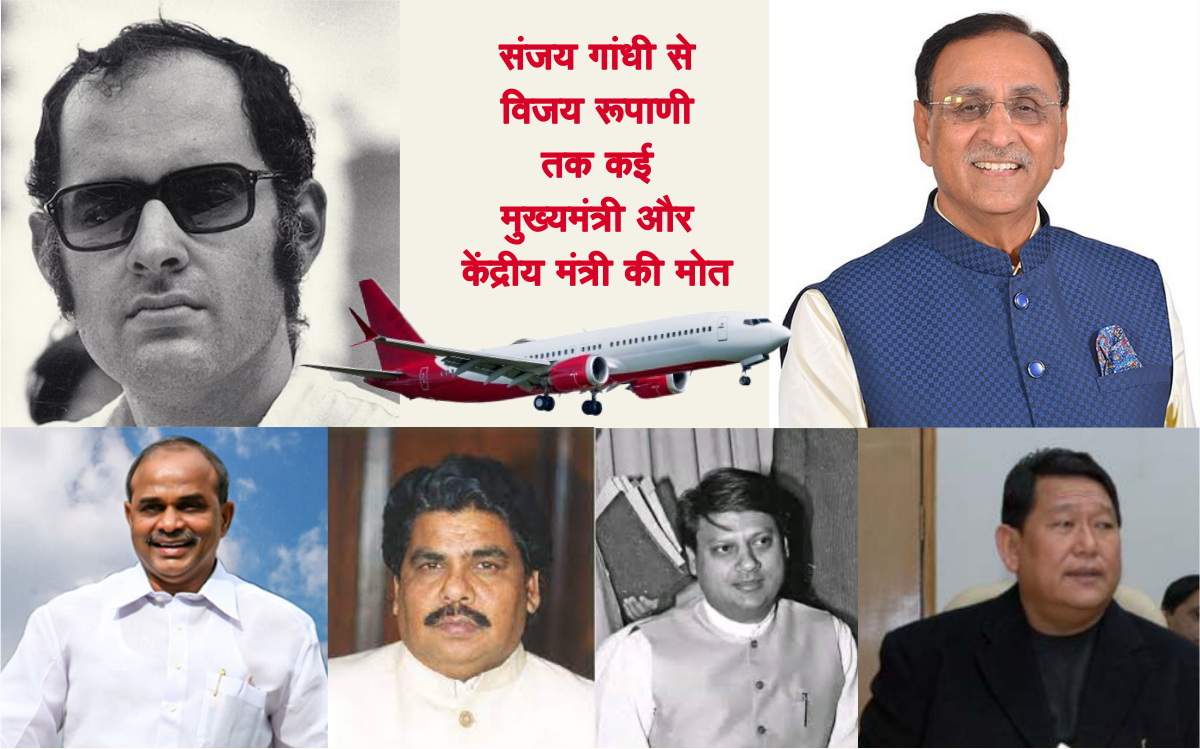 अहमदाबाद Plane Crash : संजय गांधी से विजय रूपाणी तक कई मुख्यमंत्री और केंद्रीय मंत्री की मोत । अहमदाबाद प्लेन क्रैश में पूर्व सीएम विजय रूपाणी की मौत हो गई है। हादसे में 242 लोगों की मौतों हो चुकी है। बता दें, देश ने विमान हादसों में संजय गांधी से लेकर माधवराव सिंधिया तक, कई बड़े नेताओं को खोया है।