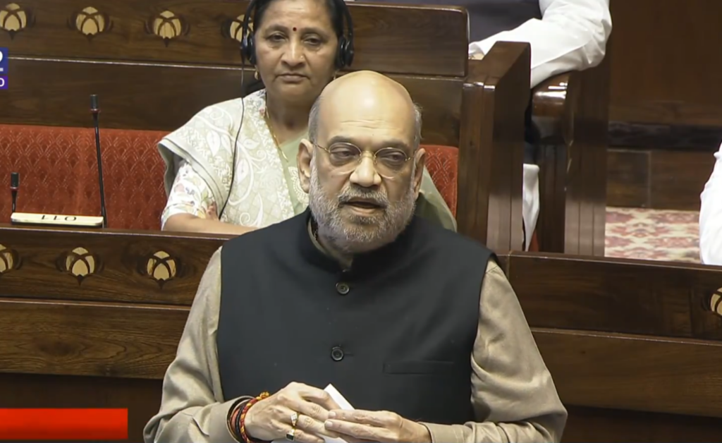 अमित शाह ने चर्चा के दौरान दावा किया कि एक दौर में वंदे मातरम् बोलने वाले कई लोगों को इंदिरा गांधी की सरकार ने जेल भेजा था।