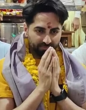 महाकाल को देखते हुए आयुष्मान यलो टी-शर्ट पहने हुए थे। वे फूलों की माला भी पहने हुए थे। अभिनेता के माथे पर तिलक भी लगा हुआ था।