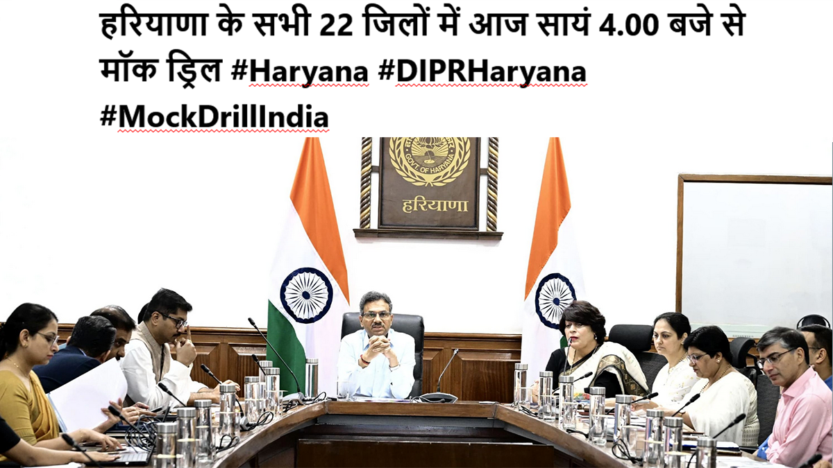 हरियाणा के सभी 22 जिलों में आज सायं 4.00 बजे से मॉक ड्रिल की जाएगी। इसके दृष्टिगत, आमजन से अनुरोध किया गया है कि वे सायं 7.50 बजे से 8.00 बजे तक अपने घरों की सभी लाइटें बंद कर दें। #Haryana #DIPRHaryana #MockDrillIndia