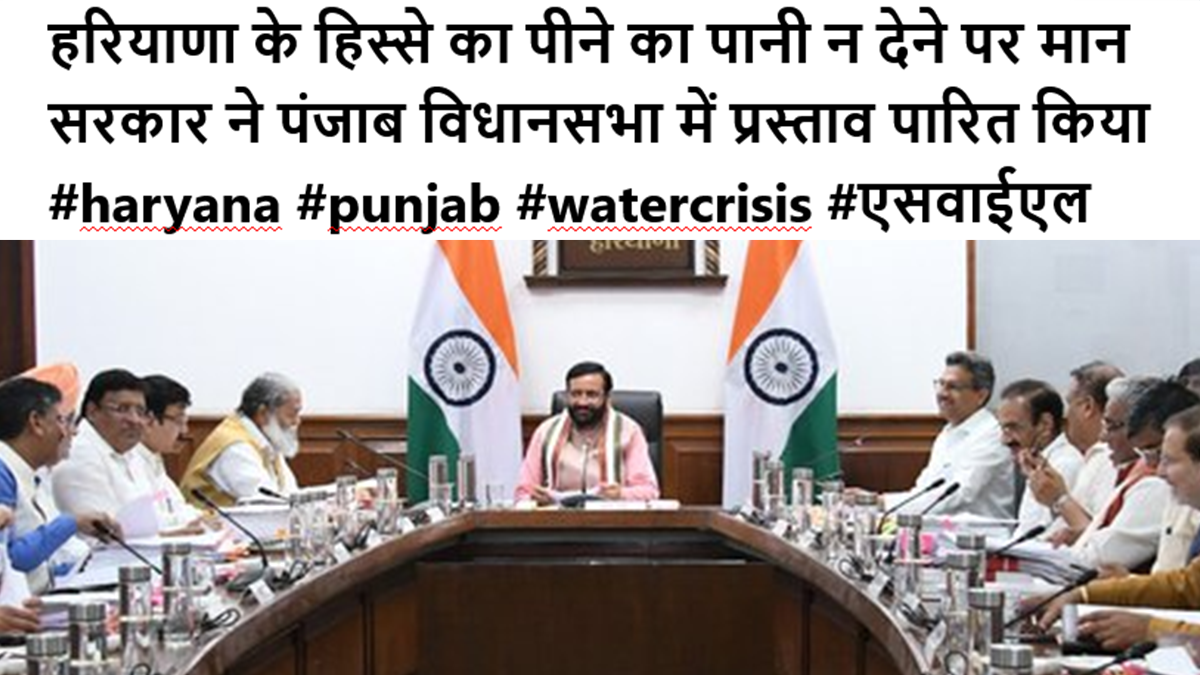 हरियाणा मंत्रिमंडल की बैठक के उपरांत पत्रकारों से बातचीत में #haryana #punjab #watercrisis #एसवाईएल ” पीने का पानी न देने पर मान सरकार ने पंजाब विधानसभा ” मुख्यमंत्री श्री @NayabSainiBJP ने कहा कि पानी के मुददे पर पंजाब ओछी राजनीति कर रहा है। इससे पहले भी एसवाईएल मुद्दे पर पंजाब विधानसभा में प्रस्ताव पारित किया और सर्वोच्च न्यायालय के फैसले को दरकिनार किया।
