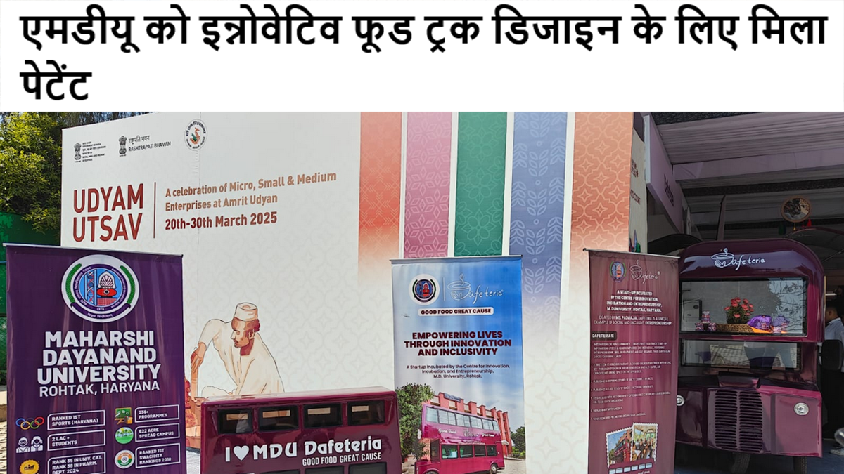 विश्वविद्यालय के प्रवक्ता ने बताया कि पेटेंट किया गया डिजाइन एमडीयू में सेंटर फॉर इनोवेशन, इनक्यूबेशन और एंटरप्रेन्योरशिप (सीआईआईई) के तत्वावधान में इनक्यूबेट किए गए छात्रों द्वारा संचालित फूड ट्रक डफेटेरिया नामक अभिनव परियोजना का हिस्सा है। यह पहल स्टार्टअप हरियाणा के व्यापक दृष्टिकोण और विश्वविद्यालय की इनोवेशन, इनक्यूबेशन और उद्यमिता नीति के अनुरूप है। यह परियोजना व्यावहारिक शिक्षा को उत्पाद विकास, प्रोटोटाइप परीक्षण और बौद्धिक संपदा के निर्माण के साथ एकीकृत करती है, जिससे परिसर में एक व्यावहारिक उद्यमशीलता पारिस्थितिकी तंत्र को बढ़ावा मिलता है।