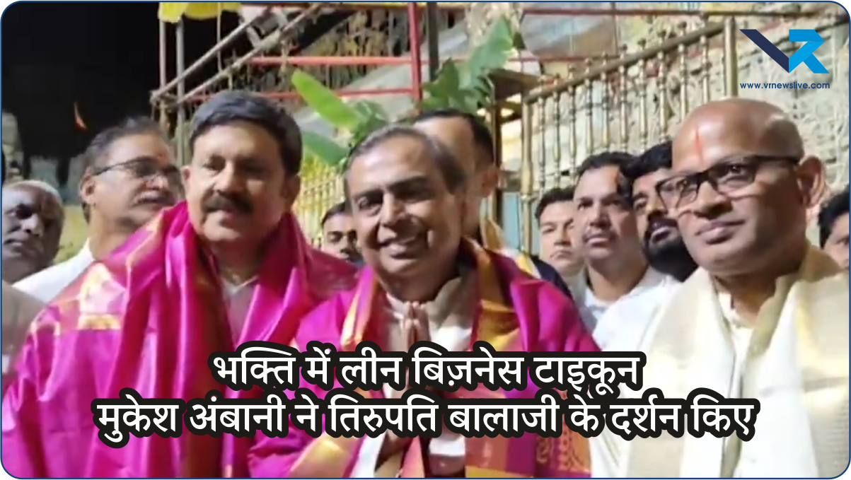 भारत के प्रमुख उद्योगपति और रिलायंस इंडस्ट्रीज लिमिटेड के चेयरमैन मुकेश अंबानी ने आज सुबह तिरुमाला तिरुपति बालाजी मंदिर में भगवान श्री वेंकटेश्वर के दर्शन किए। इस अवसर पर उन्होंने ‘सुप्रभात सेवा’ में भाग लिया, जो मंदिर में होने वाले सबसे विशेष और पवित्र अनुष्ठानों में से एक है।