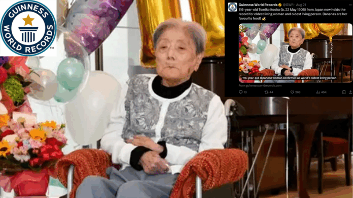गिनीज वर्ल्ड रिकॉर्ड्स के अनुसार, 116 वर्षीय मारिया ब्रान्यास के निधन के बाद, 116 वर्ष की उम्र में tomiko itooka नामक एक जापानी महिला दुनिया की सबसे बुजुर्ग जीवित व्यक्ति बन गई।