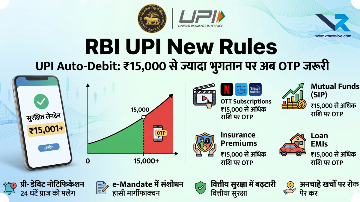 UPI Auto-Debit Rules Change: अब ₹15,000 से ज्यादा के भुगतान के लिए OTP अनिवार्य, जानें RBI के नए नियम और आप पर असर