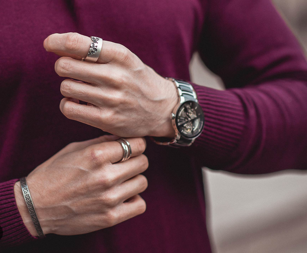 2. लेदर ब्रेसलेट्स और रिंग्स: सिंपल चांदी के छल्ले या डार्क ब्राउन लेदर के ब्रेसलेट्स पुरुषों को एक रफ-एंड-टफ लेकिन स्टाइलिश लुक देते हैं।
