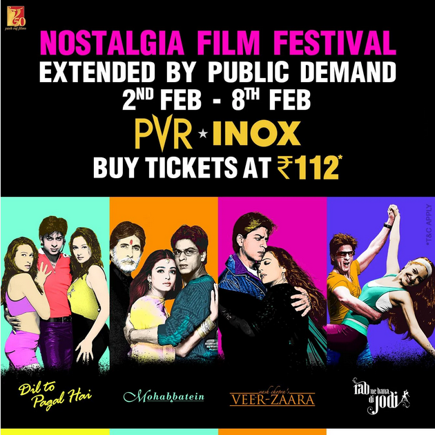 ये फेस्टिवल यशराज फिल्म्स 19 से 22 जनवरी तक नॉस्टेल्जिया फिल्म फेस्टिवल था अपर दर्शाकोकी मांग पर इसकी तारीख २ फरवरी से 8 फरवरी तक बढ़ा दी गई है |